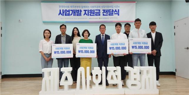Á¦ÁÖÁö¿ª »çȸÀû°æÁ¦±â¾÷ÀÇ °Ç°ÇÑ ¼ºÀå°ú ¹ßÀüÀ» µµ¸ðÇϰí Áö¿ª°æÁ¦ Ȱ¼ºÈ¿Í ¾çÁúÀÇ ÀÏÀÚ¸® âÃâÀ» À§ÇØ ÃßÁøÇؿ ¡®Çѱ¹¸¶»çȸ Á¦ÁÖº»ºÎ¿Í ÇÔ²²ÇÏ´Â »çȸÀû°æÁ¦ ¼ºÀåÁö¿ø»ç¾÷¡¯Àº 2019³âºÎÅÍ ½ÃÀÛÇØ ¿ÃÇØ 4ȸ°ÀÌ´Ù. ¿ÃÇØ´Â ¡ã³ó¾÷ȸ»ç¹ýÀÎ ¢ßÁ¦ÁÖŬ¸°»ê¾÷ ¡ãÁÖ½Äȸ»ç Á¦ÁÖÂü³ó ¡ãÁÖ½Äȸ»ç ÀÏ·Î¿Í ¡ãÇÏÈ¿»ì·ÕÇùµ¿Á¶ÇÕÀÌ ¼±Á¤µÆ´Ù. ÀÌµé ±â¾÷¿¡´Â °¢ 1,500¸¸¿øÀÇ »ç¾÷°³¹ßºñ°¡ Àü´ÞµÆ´Ù.