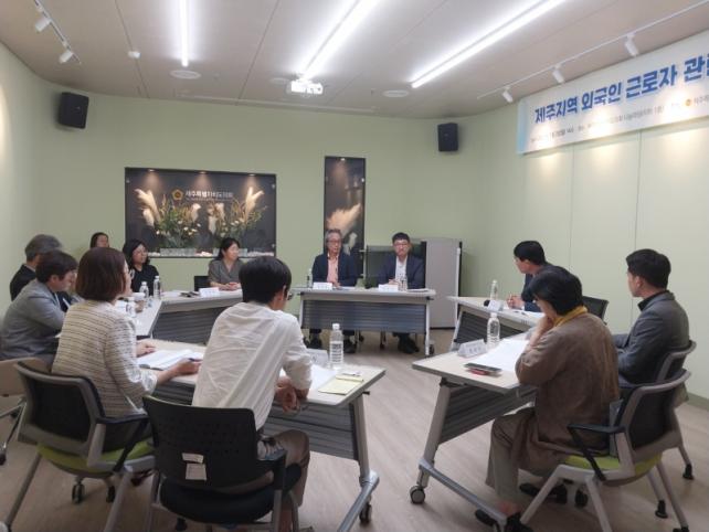 Á¦ÁÖÁö¿ª ¿Ü±¹ÀÎ ±Ù·ÎÀÚ °ü·Ã ÇöÀåÀÇ ¸ñ¼Ò¸®¸¦ °æÃ»Çϰí ÇâÈÄ Á¤Ã¥°úÁ¦ ¹ß±¼ ¸ð»öÀ» À§ÇØ ÁøÇàµÈ À̹ø ȸÀÇ¿¡´Â, Á¦ÁÖÆ¯º°ÀÚÄ¡µµÀÇȸ ³ó¼öÃà°æÁ¦À§¿øÈ¸ÀÇ ¹ÚÈ£Çü ÀÇ¿ø, °°æÈì ºÎÀ§¿øÀå, °¼ºÀÇ ÀÇ¿ø, ±×¸®°í Á¦ÁÖÆ¯º°ÀÚÄ¡µµ °æÁ¦ÀÏÀÚ¸®°ú ³ëµ¿Á¤Ã¥ÆÀ, Á¦ÁÖ¿©¼º°¡Á·¿¬±¸¿øÀÇ ¹®¼ø´ö ¿øÀå, ½Å½Â¹è ¿¬±¸À§¿ø, ÇÑ¿ë±æ Á¦Áֿܱ¹ÀαٷÎÀÚÁö¿ø¼¾ÅÍÀå, ±è»óÈÆ Á¦ÁÖ³ª¿À¹Ì¼¾ÅÍ »ç¹«±¹Àå, ±è»ê¿Á Á¦ÁÖÀÌÁÖ¿©¼º»ó´ã¼Ò ¼ÒÀå µîÀÌ Âü¼®ÇÏ¿© ÇöȲ Áø´Ü°ú Á¤Ã¥ °³¼± ¹æÇâ¿¡ ´ëÇÑ ´Ù¾çÇÑ ÀÇ°ß °øÀ¯°¡ ÀÌ·ç¾îÁ³´Ù.