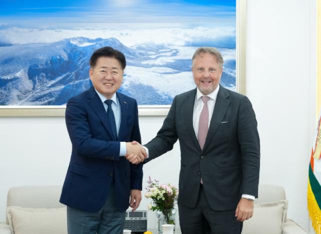 ÀÌ¿¡ ¿Ã¸µ ´ë»ç´Â ¡°¿¡³ÊÁö Àüȯ Á¤Ã¥À» ÁÖµµÇÏ´Â Çѱ¹ÀÇ ÆÛ½ºÆ® ¹«¹öÀÎ Á¦ÁÖ¿¡ °¢º°ÇÑ °ü½ÉÀ» ±â¿ïÀ̰í ÀÖ´Ù¡±¸ç, ¡°ÇâÈÄ º¸´Ù Æø³ÐÀº ¹üÀ§¿¡¼ »óÈ£ ±³·ù Çù·Â¸¦ ÇØ³ª°¡±â¸¦ Èñ¸ÁÇÑ´Ù¡±°í ¹àÇû´Ù. ÀÌ¾î ¿Ã¸µ ´ë»ç´Â Á¦ÁÖ ¼ö¼ÒÆ÷·³¿¡ µ§¸¶Å©ÀÇ ±âÈÄ¿¡³ÊÁö À¯Æ¿¸®Æ¼ Àå°ü, Áö¹æÁ¤ºÎ ¹× ±Û·Î¹ú ±â¾÷µé°ú ÇÔ²² Âü¼®ÇÏ°Ú´Ù°í ¾à¼ÓÇϸé¼, ¡°±×¸°¼ö¼Ò ±Û·Î¹ú Çãºê ±¸Ãà Á¤Ã¥À» ÃßÁøÇÏ´Â Á¦ÁÖµµ¿Í µ§¸¶Å© °£ ÆÄÆ®³Ê½ÊÀ» ÅëÇØ ¼ö¼Ò °æÁ¦ ºÐ¾ß¿¡¼ µ¿¹Ý ¼ºÀåÀ» À̷ﳪ°¡ÀÚ¡±°í È´äÇß´Ù.
