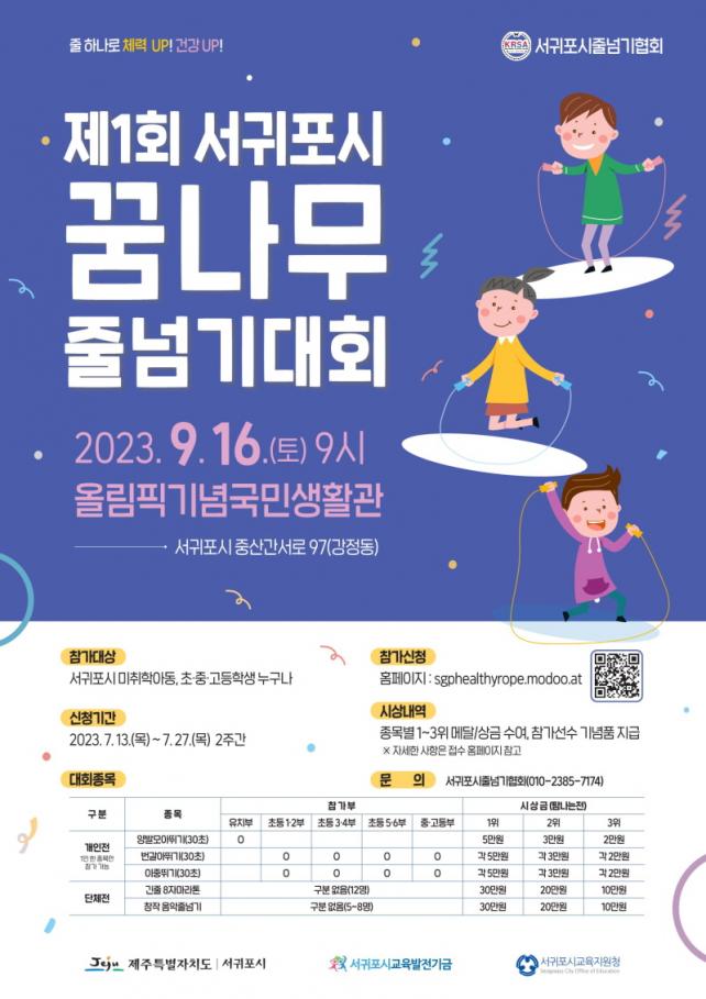 Âü°¡½ÅûÀº ¼±ÍÆ÷½Ã °ü³» ÁÖ¼Ò¸¦ µÐ À¯¾ÆºÎÅÍ ÃÊ․Áß․°íµîÇлýÀÌ¸é ´©±¸³ª °¡´ÉÇϸç 7¿ù 27ÀÏ(¸ñ)±îÁö ȨÆäÀÌÁö(www.sgphealthyrope.modoo.at)¸¦ ÅëÇØ ½ÅûÇÏ¸é µÈ´Ù.