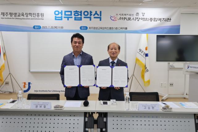 (Àç)Á¦ÁÖÆò»ý±³À°ÀåÇÐÁøÈï¿ø °í½ÂÇÑ ¿øÀåÀº¡°À̹ø ¾÷¹«Çù¾àÀ» ÅëÇØ °¢ ±â°üÀÌ ÇÑÃþ ´õ ¼ºÀåÇÒ ¼ö ÀÖ´Â °è±â°¡ µÉ °ÍÀ̶ó »ý°¢ÇÑ´Ù¡±¸ç,¡°¾ç ±â°üÀÌ º¸À¯Çϰí ÀÖ´Â ¿ì¼öÇÑ ÀÎÀû¡¤¹°Àû ÀÎÇÁ¶ó¸¦ Ȱ¿ëÇØ Àå¾ÖÀÎ Æò»ý±³À° Ȱ¼ºÈ¸¦ À§ÇØ ÃÖ¼±À» ´ÙÇÒ °Í¡±À̶ó°í ¹àÇû´Ù.