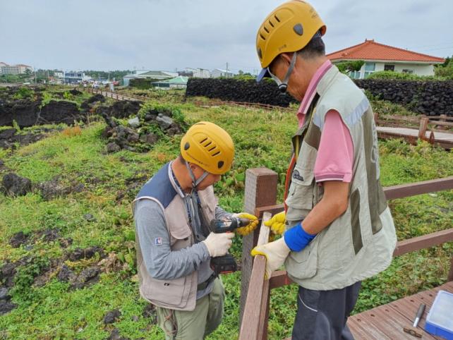 Á¦ÁÖ ¼ºÎ±Ç¿ªÀÇ ¹®ÈÀ縦 °ü¸®ÇÏ´Â ÇØ´ç °æ¹Ìº¸¼öÆÀÀº ¿ù·É¸® ¼±ÀÎÀå ±º¶ô ޹æ·Î Á¤ÀÚ ºÎ±Ù ¿ïŸ¸® »óºÎ °¡·ÎÃ¥ÀÌ Å»¶ôÇÑ ºÎºÐÀ» ¹ß°ßÇÏ¿©, ÆÄ¼ÕºÎÀÇ ¸ñÀ縦 ±³Ã¼¡¤°íÁ¤ÇÏ¿´À¸¸ç, µµÆ÷Á¦¸¦ ¹Ù¸£´Â °ÍÀ¸·Î ÀÛ¾÷À» ¸¶¹«¸®ÇÏ¿´´Ù.
