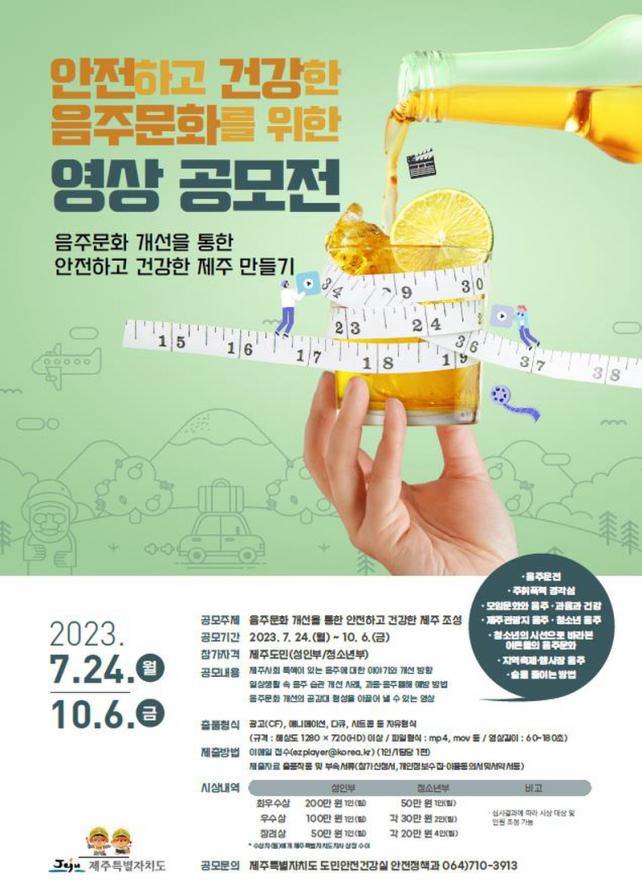 À̹ø °ø¸ðÀüÀº ¡®2023³â µµ¹Î¾ÈÀü À̰͸¸Àº ²À ¹Ù²ß½Ã´Ù – ¾ÈÀüÇÏ°í °Ç°ÇÑ Á¦ÁÖ ½ÇÇöÀ» À§ÇÑ À½ÁÖ¹®È °³¼±¡¯À» À§ÇØ ´Ù¾çÇÑ °èÃþÀÇ »ý°¢°ú ½Ã¼±À» °øÀ¯Çϰí, µµ¹Î»çȸ¿¡ ¾ÈÀü¹®È¿îµ¿À» ³Î¸® ¾Ë¸®±â À§ÇØ ±âȹµÆ´Ù.