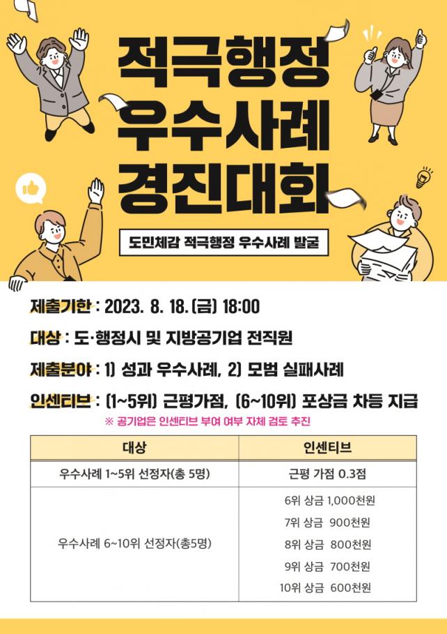 Àû±ØÇàÁ¤ ¿ì¼ö»ç·Ê·Î´Â ºÒÇÕ¸®ÇÑ ±ÔÁ¦ °³¼±À» Æ÷ÇÔÇØ °ø°ø¼ºñ½º Áú Çâ»óÀ» À§ÇØ Àû±ØÇàÁ¤À» ½ÇõÇÑ »ç·Ê µîÀ¸·Î µµ¡¤ÇàÁ¤½Ã, Áö¹æ°ø±â¾÷(Á¦ÁÖ°³¹ß°ø»ç, Á¦ÁÖ°ü±¤°ø»ç, Á¦ÁÖ¿¡³ÊÁö°ø»ç)¿¡ ¼ÓÇÑ Á÷¿ø ´©±¸³ª 8¿ù 18ÀϱîÁö Âü¿©ÇÒ ¼ö ÀÖ´Ù.