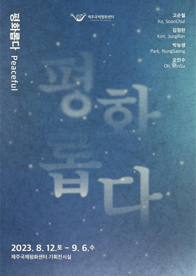 ÆòÈ·Ó´Ù´Â Æòȸ¦ ½ÇÇöÇϰíÀÚ ÇÏ´Â Àΰ£°ú ÀÚ¿¬ÀÇ ±³°¨À» 100È£ ÀÌ»ó Å©±âÀÇ µ¶Ã¢ÀûÀÎ Æò¸éÀÛǰ°ú ¹Ìµð¾î·Î Ç¥ÇöÇÑ Àü½ÃÀÌ´Ù. À̹ø Àü½Ã¿¡´Â Á¦ÁÖ±¹Á¦Æòȼ¾ÅÍ 2023 ÆòÈ Àü±â°ø¸ðÀü¿¡ ¼±Á¤µÈ ¿À¹Î¼ö, °í¼øÃ¶, ±èÁ¤¶õ, ¹Ú´É»ý ÀÛ°¡ ÆÀÀÌ Âü¿©Çß´Ù.