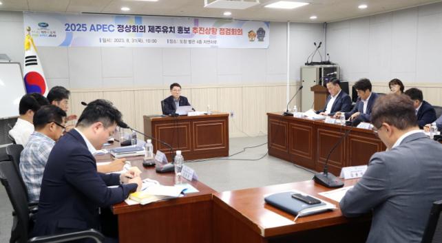 ±è¼ºÁß ÇàÁ¤ºÎÁö»ç°¡ ÁÖÀçÇÑ À̳¯ ȸÀÇ´Â µµ °ü·Ã ºÎ¼*¸¦ ºñ·ÔÇØ Á¦ÁÖ±¹Á¦ÀÚÀ¯µµ½Ã°³¹ß¼¾ÅÍ, Á¦ÁÖ°ü±¤°ø»ç, Á¦ÁÖµµ°ü±¤Çùȸ, Á¦ÁÖ±¹Á¦ÄÁº¥¼Ç¼¾ÅͰ¡ Âü¼®ÇØ APEC ¼º°ø À¯Ä¡¸¦ À§ÇÑ Àü·«°ú ´ëÀÀ °èȹÀ» Á¡°ËÇß´Ù. Á¦ÁÖµµ´Â ÃßÁøÁغñ´ÜÀ» °ÈÇØ Áö³ 7¿ù 28ÀÏ 2025 APEC Á¤»óȸÀÇ Á¦ÁÖÀ¯Ä¡¸¦ À§ÇÑ Àü´ãÁ¶Á÷À» ±¸¼ºÇÑ µ¥ À̾î, À¯°ü±â°ü°ú ¹Î°£ Çù¾÷À» ¹ÙÅÁÀ¸·Î È«º¸ Ȱµ¿°ú Á¦¾È¼ ÀÛ¼º µî Åõ Æ®·¢ Àü·«À¸·Î ´ëÀÀ ÁßÀÌ´Ù.