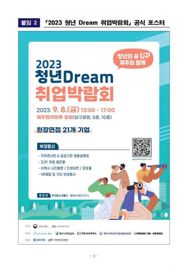 Âü¿©±â¾÷À̳ª ä¿ë °ü·Ã »ó¼¼ÇÑ Á¤º¸´Â ¹Ú¶÷ȸ ´©¸®Áý(www.jejudreamjob.com)¿¡¼ È®ÀÎÇÒ ¼ö ÀÖÀ¸¸ç, ÀÚ¼¼ÇÑ »çÇ×Àº ¿î¿µ±â°üÀÎ ¢ß¾¾ÆÐ½º(¢Î 064-803-0711~2)·Î ÇÏ¸é µÈ´Ù.