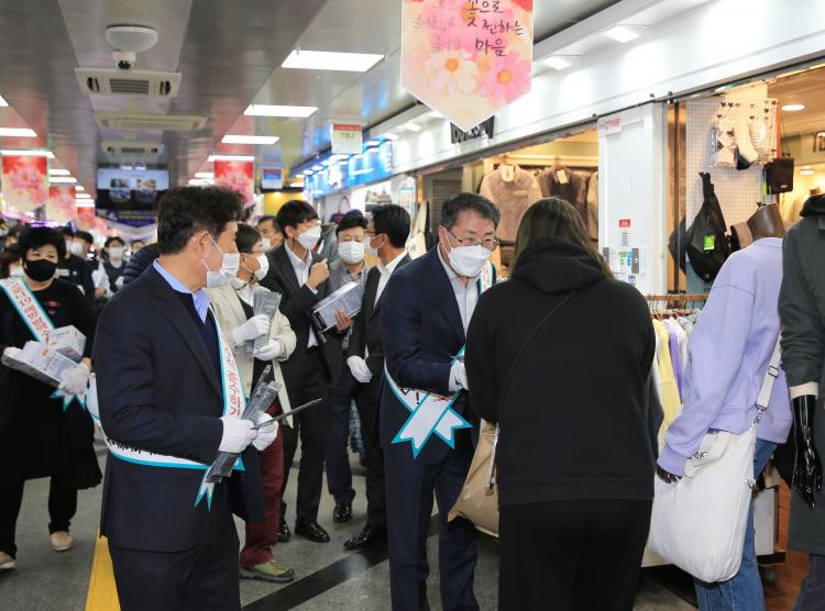À̹ø Ä·ÆäÀÎÀº Äڷγª19 È®»ê ¹æÁö¸¦ À§ÇØ Áö³ Á¦6Â÷ Á¦ÁÖÇü Ưº°¿µ¿ªÇàÁ¤Á¶Ä¡(2020.10.19.±âÁØ)¿¡ ÀǰŠ¡®Áß¾Ó·ÎÁöÇϵµ»ó°¡¡¯´Â ¸¶½ºÅ©Âø¿ë Àǹ«È ½Ã¼³·Î ÁöÁ¤µÊ¿¡ µû¶ó Á¦ÁÖÁß¾ÓÁöÇÏ»óÁ¡°¡Çùµ¿Á¶ÇÕ(ÀÌ»çÀå °íÁ¤È£)ÀÌ ÁÖÃÖ·Î ÁøÇàµÇ¾úÀ¸¸ç, ½Ã¹Î¡¤°ü±¤°´ µîÀ» ´ë»óÀ¸·Î Áß¾ÓÁöÇϵµ»ó°¡ µî ´ÙÁßÀÌ¿ë½Ã¼³ ¹æ¹® ½Ã¿¡´Â ¸¶½ºÅ© Âø¿ë »ýȰÈÇØ ÁÙ °ÍÀ» È«º¸ ÇÏ¿´À¸¸ç, ¶ÇÇÑ, ÄÚ·Î19·Î °æÁ¦Àû ¾î·Á¿ò¿¡ Ã³ÇØ ÀÖ´Â ¼Ò»ó°ø°ú ÀÚ¿µ¾÷ÀÚ µîÀ» À§ÇÑ Áö¿ª»ó±Ç ÀÌ¿ëÇϱâ È«º¸ º´Çà ÃßÁøÇÔÀ¸·Î½á ÀÌ ¾î·Á¿î °æÁ¦ »óȲÀ» À̰ܳ¾ ¼ö ÀÖµµ·Ï Àû±ØÀûÀÎ Âü¿©¸¦ È«º¸ ÇÏ¿´´Ù.