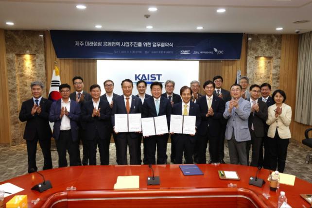 Á¦ÁÖÆ¯º°ÀÚÄ¡µµ¿Í KAIST, Á¦ÁÖ±¹Á¦ÀÚÀ¯µµ½Ã°³¹ß¼¾ÅÍ(JDC)´Â 5ÀÏ ´ëÀü KAIST º»¿ø¿¡¼ ¡®Á¦ÁÖ ¹Ì·¡¼ºÀå °øµ¿Çù·Â »ç¾÷ ÃßÁøÀ» À§ÇÑ ¾÷¹«Çù¾à¡¯À» ü°áÇß´Ù°í ¹àÇû´Ù.