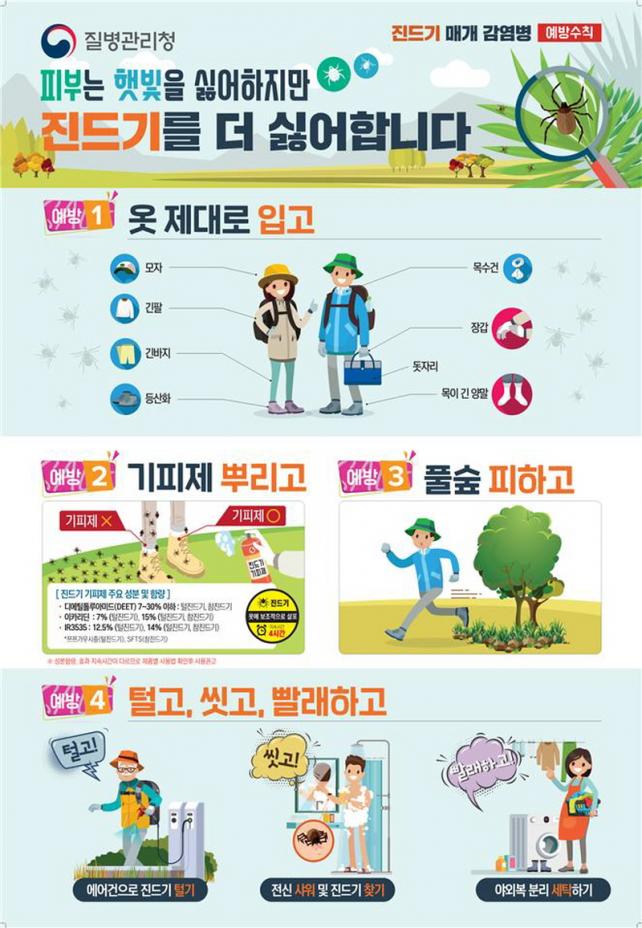 Áøµå±â ¸Å°³ °¨¿°º´À» ¿¹¹æÇϱâ À§Çؼ´Â Áøµå±â¿¡ ¹°¸®Áö ¾Ê´Â °ÍÀÌ Áß¿äÇϸç, ¾ß¿ÜȰµ¿ ½Ã ±ä¼Ò¸Å¿Í ±ä ¹ÙÁö µîÀ¸·Î ÇǺΠ³ëÃâÀ» ÃÖ¼ÒÈÇÏ°í ±Í°¡ ÈÄ¿¡´Â ¹Ù·Î ¿ÊÀ» ¼¼Å¹ÇÏ°í »þ¿öÇÏ¸é¼ Áøµå±â¿¡ ¹°·È´ÂÁö È®ÀÎÇØ¾ßÇÑ´Ù.