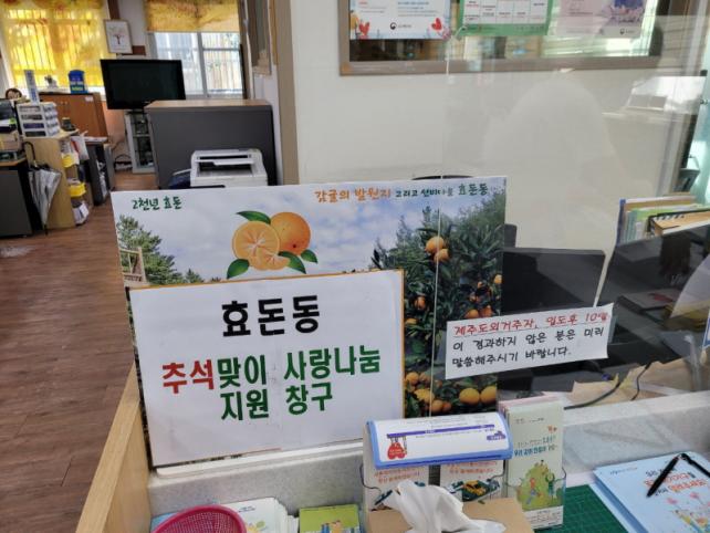 Ãß¼®¸ÂÀÌ »ç¶û³ª´® Áö¿ø ⱸ´Â 9¿ù 4ÀÏ(¿ù)ºÎÅÍ 9¿ù 27ÀÏ(¼ö)±îÁö 24Àϰ£ Áֹκ¹Áö°ú ¹× À¾‧¸é‧µ¿Áֹμ¾ÅÍ¿¡¼ ¿î¿µÇϰí ÀÖÀ¸¸ç, °³ÀÎ‧±â°ü‧´Üüµé·ÎºÎÅÍ ÈÄ¿ø ¹°Ç°À» Á¢¼ö¹Þ¾Æ ¾î·Á¿î ÀÌ¿ôµé¿¡°Ô Áö¿øÇÏ°Ô µÈ´Ù.