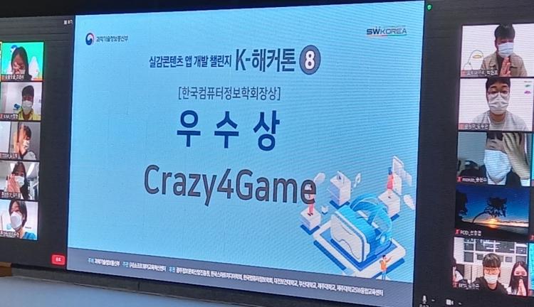 ¼ö»óÀÚ´Â ¡®Crazy4Game¡¯ ÆÀ(ÆÀÀå ±èÁø¿õ, ÆÀ¿ø ÇÑÀÎö¤ýÇ㼺½Ä¤ý±è¼ºÇö). ÀÌ ÆÀÀº ¡®¡°¿À¸§À» ¾Æ¿ì¸§¡¯À̶ó´Â ¾ÛÀ» °³¹ßÇß´Ù. Á¦ÁÖµµ³» ¿À¸§ Á¤»óÀÇ AR(Áõ°Çö½Ç) ¸¶Ä¿¸¦ ŽÁöÇÏ´Â AR Ä«¸Þ¶ó ±â´É, »ç¿ëÀÚ¿Í ¿À¸§ÀÇ À§Ä¡¸¦ °Ë»ö È®ÀÎÇÒ ¼ö ÀÖ´Â ¿À¸§ Áöµµ ±â´É, ¿À¸§À» ¿À¸£°í ´Þ¼ºÇÑ ¾÷ÀûÀ» ±âÁØÀ¸·Î ÇÏ´Â ·©Å· ±â´ÉÀ» µîÀ» ÅëÇØ Á¦ÁÖ ¿À¸§¿¡ ´ëÇÑ Áö¿ªÀû Ư»ö°ú ´õºÒ¾î °ÔÀÓÀû ¿ä¼Ò¸¦ Àß Á¢¸ñÇß´Ù´Â ÆòÀ» ¾ò¾ú´Ù.