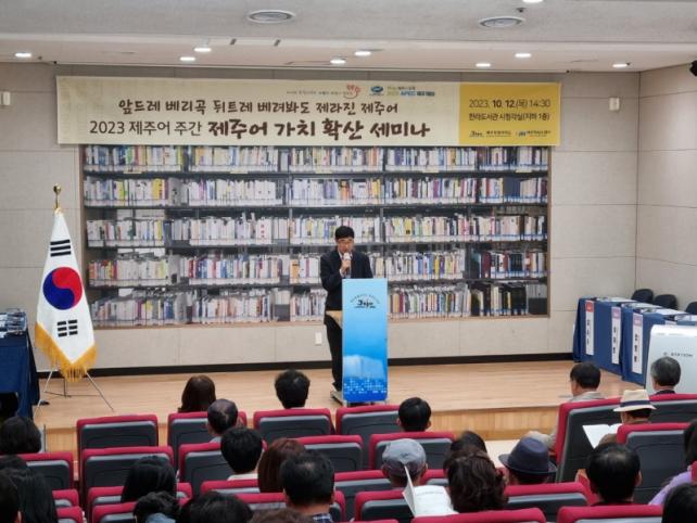 ¡®Á¦ÁÖ¾î °¡Ä¡ È®»ê ¼¼¹Ì³ª¡¯°¡ 12ÀÏ ¿ÀÈÄ 2½Ã 30ºÐ Á¦ÁÖÇѶ󵵼°ü ½Ãû°¢½Ç¿¡¼ °³ÃֵƴÙ. À̳¯ ¼¼¹Ì³ª¿¡´Â ¿À¼ºÀ² Á¦ÁÖµµ ¹®ÈüÀ°±³À°±¹ÀåÀ» ºñ·ÔÇØ ÀÌ»ó±Ô Àü ±¹¸³±¹¾î¿øÀå, ÀÌÅ¿µ ÀüºÏ´ëÇб³ ¸í¿¹±³¼ö, ±è¼øÀÚ Á¦ÁÖÇבּ¸¼¾ÅÍÀå µî Áö¿ª¾î °ü·Ã Àü¹®°¡ ¹× Á¦ÁÖ¾î °ü·Ã ´Üü µî 100¿©¸íÀÌ Âü¼®Çß´Ù.