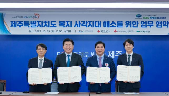 Á¦ÁÖµµ´Â 19ÀÏ ¿ÀÀü 10½Ã Á¦ÁÖµµÃ» »ï´ÙȦ¿¡¼ Á¦ÁÖ»çȸº¹Áö°øµ¿¸ð±Ýȸ(ȸÀå °Áö¾ð), ´ëÇÑÀû½ÊÀÚ»ç Á¦ÁÖµµÁö»ç(ȸÀå Á¤Å±Ù), ÃÊ·Ï¿ì»ê ¾î¸°ÀÌÀç´Ü Á¦ÁÖÁö¿ªº»ºÎ(º»ºÎÀå º¯Á¤±Ù)¿Í ¡®º¹Áö »ç°¢Áö´ë ÇØ¼Ò¸¦ À§ÇÑ ¾÷¹«Çù¾à¡¯À» ü°áÇß´Ù.