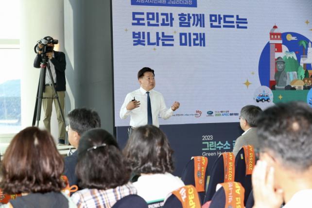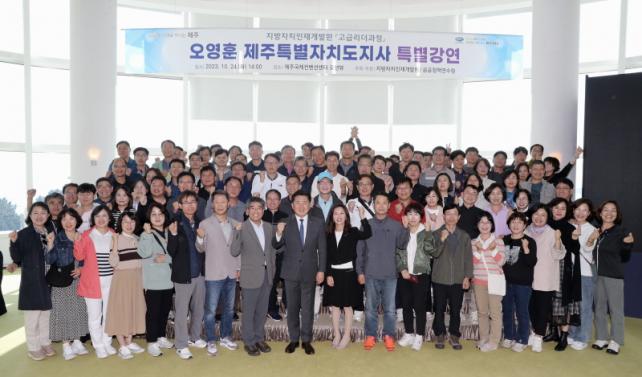 À̹ø °¿¬Àº ¿ª»ç¡¤¹®È ¿ì¼ö»ç·Ê ޹æ Â÷ 3¹Ú 4Àϰ£(10.23~26.) Á¦ÁÖ¸¦ ¹æ¹®ÇÑ ±³À°»ý(Àü±¹ ¼±â°ü) 113¸í¿¡°Ô ¹Î¼±8±â Á¦ÁÖµµÁ¤¿¡¼ Çõ½ÅÀûÀ¸·Î ÃßÁøÇÏ´Â »ç¾÷À» °øÀ¯Çϱâ À§ÇØ ¸¶·ÃµÆ´Ù. Ưº°°¿¬¿¡ ³ª¼± ¿À¿µÈÆ Áö»ç´Â Á¦ÁÖ4¡¤3ÀÇ ¿ª»ç¿Í ±Øº¹ °úÁ¤À» ÅëÇØ Á¦ÁÖ°¡ ¹Ì·¡·Î ³ª¾Æ°¡°í ÀÖ´Ù°í °Á¶Çϸç Á¦ÁÖµµÁ¤ÀÌ ¿ªÁ¡ÀûÀ¸·Î ÃßÁøÇÏ´Â ¹Ì·¡Çõ½Å»ê¾÷ µî¿¡ ´ëÇØ ¼³¸íÇß´Ù.