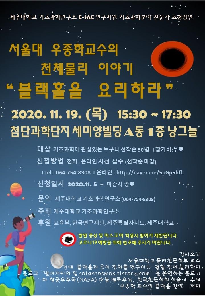 À̹ø °¿¬Àº ºí·¢È¦À» °üÂûÇÏ°í ºí·¢È¦ ¿îµ¿À» º¸¸é¼ ´Ù¾çÇÑ ¹°¸®Çö»óÀ» ¿¬±¸Çϴ õü¹°¸® ºí·¢È¦ ¿¬±¸ÀÚ ¿ì ±³¼ö°¡ ¡®ºí·¢È¦À» ¿ä¸®Ç϶󡯴 ÁÖÁ¦·Î ÁøÇàÇÑ´Ù.