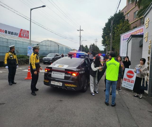 Á¦ÁÖÀÚÄ¡°æÂû´ÜÀº ÀԽǽð£ÀÌ Ã˹ÚÇÑ ¼öÇè»ý 1¸íÀ» ±ä±Þ ¼ö¼ÛÇÏ´Â µî ¼öÇè»ýµéÀÌ Â÷Áú ¾øÀÌ ½ÃÇèÀ» Ä¡¸¦ ¼ö ÀÖµµ·Ï µµ¿Ô´Ù. ¿ÀÀü 7½Ã 35ºÐ°æ ¼±ÍÆ÷½Ã µ¿È«µ¿¿¡¼ ¹ö½º¸¦ ³õÃÄ ´çȲÇÑ ÇÑ ¼öÇè»ýÀÌ Àα٠µµ·Î¿¡¼ ±³Åë°ü¸®¸¦ ÇÏ´ø °æÂû°ü¿¡°Ô µµ¿òÀ» ¿äûÇÏÀÚ ¼øÂûÂ÷·Î »ï¼º¿©°í±îÁö ¾ÈÀüÇÏ°Ô À̵¿Çϵµ·Ï Áö¿øÇß´Ù.