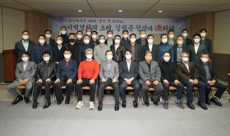 ¿öÅ©¼ó ijġÇÁ·¹ÀÌÁî´Â ¡¸Á¦ÁÖ¿¡¼ÀÇ 100ÀÏ, ¹ß·Î ¶Ú 565km¡¹·Î, ±è¿øÁØ Ã»ÀåÀÌ ÃëÀÓ ÈÄ 100ÀÏ µ¿¾È Áö±¸´ë¡¤ÆÄÃâ¼Ò µî Àϼ± ÇöÀåÀ» ¹æ¹®Çϱâ À§ÇØ À̵¿ÇÑ °Å¸®°¡ 565km·Î, ¾ÕÀ¸·Îµµ µµ¹Î ÃÖÁ¢Á¡ ºÎ¼¿¡¼ ÀÏÇÏ´Â Áö¿ª°æÂû°ú ÇÔ²²Çϸç À̵éÀÇ ¸ñ¼Ò¸®¸¦ µéÀ¸¸ç Áö¼ÓÀûÀ¸·Î ¼ÒÅëÇϰڴٴ ÀÇÁö¸¦ ´ã°í ÀÖ´Ù.