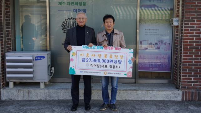 [Á¦ÁÖµµ¹Î½Å¹® = ¿À½ÂÅà ±âÀÚ] ÈÀåǰ Á¦Á¶ÆÇ¸Å¾÷ü ¢ß¹Ì¾îÇÊ(´ëÇ¥ °ÃæÈñ)Àº 21ÀÏ Á¦ÁÖÆ¯º°ÀÚÄ¡µµ»çȸº¹ÁöÇùÀÇȸ(ȸÀå °í½ÂÈ)¿¡¼ ¿î¿µÇÏ´Â Á¦ÁÖÆ¯º°ÀÚÄ¡µµÇªµå¹ðÅ©¿¡ 2,796¸¸¿ø »ó´ç ½ºÅ²Äɾî Á¦Ç°À» Àü´ÞÇß´Ù.