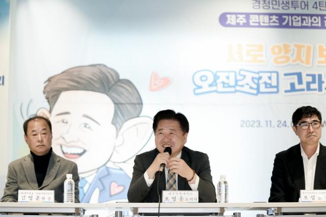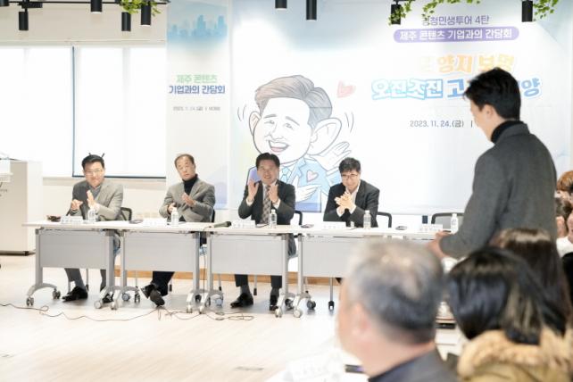 ¿À¿µÈÆ Áö»ç´Â 24ÀÏ ¿ÀÀü 11½Ã 40ºÐ W360¿¡¼ Á¦ÁÖ ÄÜÅÙÃ÷±â¾÷ °ü°èÀÚµéÀ» ¸¸³ª ÄÜÅÙÃ÷»ê¾÷ Ȱ¼ºÈ¸¦ À§ÇÑ µµÁ¤ÀÇ ÁÖ¿ä ÃßÁø¹æÇâÀ» °øÀ¯Çϰí, Á¦ÁÖÇü ÄÜÅÙÃ÷»ê¾÷ÀÇ µµ¾àÀ» À§ÇÑ »õ·Î¿î ¿¬°á°ú À¶ÇÕÀ» ¸ð»öÇß´Ù.