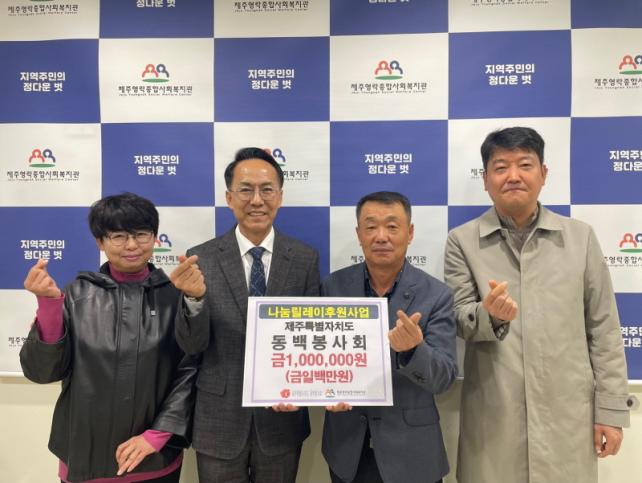 ±èµ¿Çõ ȸÀåÀº¡°È¸¿øµéÀÇ ¼ø¼öÇÑ ÈÄ¿øÀ¸·Î ÀÌ·ç¾îÁø ±âºÎ±ÝÀ¸·Î Á¦ÁÖ¿µ¶ôÁ¾ÇÕ»çȸº¹Áö°ü »ç·Ê°ü¸®»ç¾÷ÆÀÀÇ ³ª´®¸±·¹ÀÌ¿¡ ÇÔ²² ÇÒ ¼ö ÀÖ¾î¼ ±â»Ú¸ç, ÀÌ·± ±âºÎ°¡ ŸÀÎÀ» À§Çؼ¶ó±âº¸´Ù´Â ³»ÀÚ½ÅÀÇ ÇູÀ¸·Î ´Ù°¡¿À±â ¶§¹®¿¡ Áö¼ÓÀûÀ¸·Î ÇÒ ¼ö ÀÖ´Â °Í °°´Ù.¡±¸ç Àû±ØÀûÀÎ Áö¿øÀ» ¾à¼ÓÇÏ¿´´Ù.