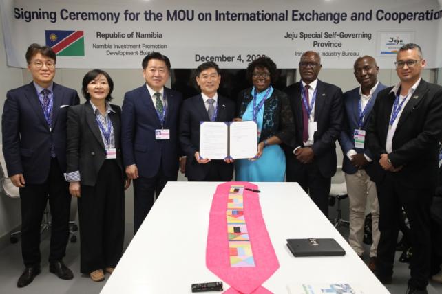 ³ª¹Ìºñ¾Æ ÅõÀÚÁøÈï°³¹ßÀ§¿øÈ¸ÀÇ ¿äûÀ¸·Î ¼º»çµÈ À̹ø ¡®Á¦ÁÖ-³ª¹Ìºñ¾Æ ½Ç¹«±³·ù ¹× »óÈ£Çù·Â ÁõÁøÀ» À§ÇÑ ¾÷¹«Çù¾à½Ä¡¯Àº Á¦ÁÖµµ Çõ½Å»ê¾÷±¹°ú NIPDB °£ ü°á·Î ÀÌ·ïÁ³´Ù.