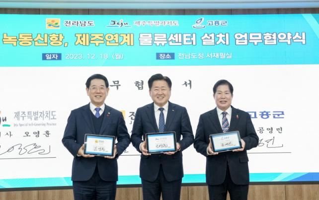 Á¦ÁÖµµ¿Í Àü¶ó³²µµ, °íÈﱺÀº 18ÀÏ ¿ÀÀü 11½Ã Àü¶ó³²µµÃ» ¼ÀçÇʽǿ¡¼ Áö¿ªÀÇ ¹°·ù»ê¾÷ ¹ßÀü°ú ¿øÈ°ÇÑ ¹°·ùü°èÀÇ È¿À²¼ºÀ» ³ôÀ̱â À§ÇØ ¾÷¹«Çù¾àÀ» ü°áÇß´Ù°í ¹àÇû´Ù.