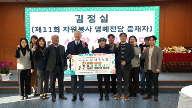 ±èÁ¤½É ¾Æ¶óµ¿¹Ù¸£°Ô»ì±â¿îµ¿À§¿øÀå, ÀÌ¿ô»ç¶û ¼º±Ý 100¸¸¿ø Àü´Þ