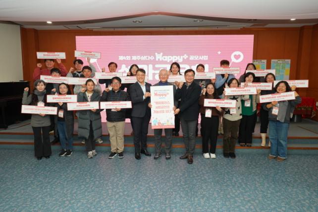 ÇÑÆí, ¡®Á¦4ȸ Á¦ÁÖ»ï´Ù¼ö¿Í ÇÔ²²ÇÏ´Â Happy+°ø¸ð»ç¾÷¡¯Àº »ç¾÷¿î¿µºñ¿Í ¼º°ú°ü¸®ºñ µî ÃÑ6¾ï¿ø »ó´çÀÇ ±Ô¸ð·Î ÁøÇà µÇ¾úÀ¸¸ç, º¹ÁöÀÇÁ¦¹ß±¼À» À§ÇÑ ¾ÆÀ̵ð¾î½Çõ»ç·Ê°ø¸ðÀü, ÀÇÁ¦¹ß±¼À» À§ÇÑ ¼÷ÀÇÅä·Ð¿öÅ©¼ó, »ç¾÷°íµµÈ¸¦ À§ÇÑ ·¹º§¾÷ ¿öÅ©¼ó µîÀÌ ÁøÇàµÇ¾úÀ¸¸ç, Ÿ Áö¿ªÀÇ ¿ì¼öÇÑ º¹ÁöÇöÀåÀ» º¥Ä¡¸¶Å·ÇÏ´Â µµ¿Ü»ê¾÷½ÃÂû ÇÁ·Î±×·¥ µîÀ¸·Î ÁøÇàµÇ¾ú´Ù. Á¦ÁÖ°³¹ß°ø»ç´Â Happy+ °ø¸ð»ç¾÷À» ÅëÇØ Áö¿ª¹®Á¦ÇذáÀ» À§ÇÑ Çõ½ÅÀûÀÎ º¹Áö»ç¾÷ ¹ß±¼°ú º¹ÁöÇöÀå ¿ª·®°È, ¸ÂÃãÇü º¹Áö »ç¾÷À» ÁøÇà µîÀ» ÅëÇØ µµ³» Ãë¾à°èÃþ¿¡ ÇÊ¿äÇÑ º¹Áö¼ºñ½º¸¦ Á¦°øÇÒ °èȹÀÌ´Ù.