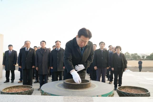 ¿À¿µÈÆ Áö»ç´Â 1¿ù 1ÀÏ ¿ÀÀü 7½ÃºÎÅÍ Ã¢¿»ç, ±¹¸³Á¦ÁÖÈ£±¹¿ø, Á¦ÁÖ4¡¤3ÆòȰø¿øÀ» ÀÕµû¶ó ¹æ¹®ÇØ ±¹°¡¿Í ¹ÎÁ·À» À§ÇØ Èñ»ýÇÑ ¼ø±¹¼±¿°ú È£±¹¿µ·ÉÀÇ ¼þ°íÇÑ Á¤½Å°ú À§ÈÆÀ» Ã߸ðÇϰí, 4¡¤3Èñ»ýÀÚµéÀÇ ³ÌÀ» À§·ÎÇß´Ù.