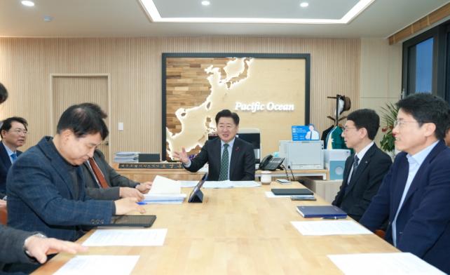 ¿À¿µÈÆ Áö»ç´Â 3ÀÏ ¿ÀÀü 8½Ã 30ºÐ Áý¹«½Ç¿¡¼ ½Ç¡¤±¹Àå ¹× À¯°ü¡¤Á÷¼Ó±â°üÀåµéÀÌ Âü¼®ÇÑ °¡¿îµ¥ µµÁ¤Çö¾È °øÀ¯ ƼŸÀÓÀ» ÁÖÀçÇß´Ù. Çö¾È ³íÀÇ¿¡ ¾Õ¼ °íÀ±ÁÖ ±¹Á¦°ü°è´ë»ç´Â 2024³â ±¹Á¦Á¤Ä¡¿Í °æÁ¦È¯°æ¿¡ ´ëÇØ ¼³¸íÇϰí, ¼¼°èÀûÀÎ È帧ÀÌ Á¦ÁÖ¿¡ ¹ÌÄ¡´Â ¿µÇâ°ú ÇÔÀǸ¦ °øÀ¯Çß´Ù.