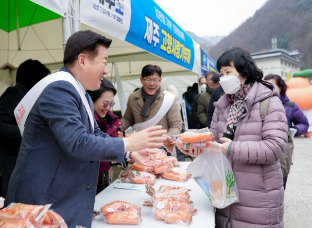 Á¦ÁÖµµ´Â ±¸Àλç ÁÖÂ÷Àå¿¡ Áö¿ª¼Òºñ ÃËÁø ¹× Áö¿ª°æÁ¦ Ȱ¼ºÈ È«º¸ºÎ½º¸¦ ¼³Ä¡ÇÏ°í ºÒ±³½ÅÀÚ ¹× ¹æ¹®°´µé¿¡°Ô °íÇâ»ç¶û±âºÎ È«º¸ ¸®Çø´À» Àü´ÞÇÏ¸ç ¡®¸¶À½ÀÇ °íÇ⡯ Á¦ÁÖ¸¦ ¾Ë¸®´Â ÇÑÆí, ±¸Á³óÇù°ú ÇÔ²² Á¦ÁÖ´ç±Ù°ú ´ç±ÙÁÖ½º¸¦ ¹«·á·Î ³ª´²ÁÖ¸ç Á¦ÁÖ³ó»ê¹°ÀÇ °¡Ä¡¸¦ È«º¸ÇØ Å« È£ÀÀÀ» ¾ò¾ú´Ù.