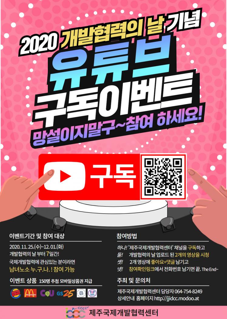 °ÅÁÖ Áö¿ª¿¡ °ü°è¾øÀÌ ±¹Á¦°³¹ßÇù·Â¿¡ °ü½É ÀÖ´Â ´©±¸³ª Âü¼®ÀÌ °¡´ÉÇÑ À̹ø À̺¥Æ®´Â Á¦ÁÖ±¹Á¦°³¹ßÇù·Â¼¾ÅÍ À¯Æ©ºê ä³ÎÀ» ±¸µ¶ÇÏ°í ¿Ã¸° 2°³ÀÇ ¿µ»ó ½Ãû ÈÄ À̺¥Æ® Âü¿©¸µÅ©¿¡ Ãß÷À» À§ÇÑ ÀüȹøÈ£¸¦ ³²±â¸é µÈ´Ù.