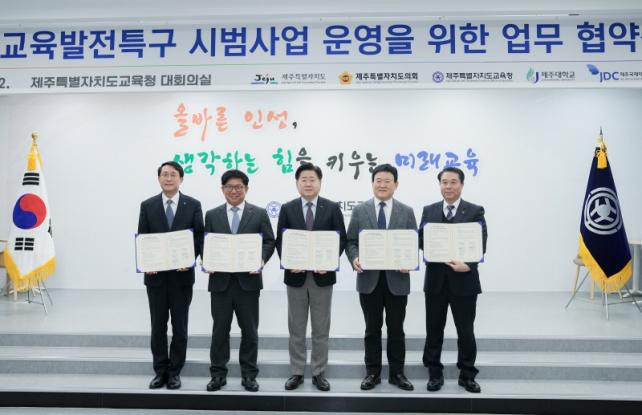 Á¦ÁÖµµ¿Í Á¦ÁÖµµ±³À°Ã»Àº 2ÀÏ ¿ÀÀü 11½Ã 30ºÐ µµ±³À°Ã» ´ëȸÀǽǿ¡¼ ¡®Á¦ÁÖ±³À°¹ßÀüƯ±¸ °ü°è±â°ü Çù¾à½Ä¡¯À» °³ÃÖÇß´Ù. À̹ø Çù¾à¿¡´Â µµ¿Í µµ±³À°Ã»»Ó¸¸ ¾Æ´Ï¶ó Á¦ÁÖµµÀÇȸ, Á¦ÁÖ´ëÇб³, JDC µî 5°³ ±â°üÀÌ Âü¿©Çϸç, ÀÌµé ±â°üÀº Á¦ÁÖ±³À°ÀÇ ¹Ì·¡¸¦ À§ÇÑ Á¦ÁÖ±³À°¹ßÀüƯ±¸ ÁÖ¿ä »ç¾÷¿¡ »óÈ£ Çù·ÂÇϱâ·Î Çß´Ù.
