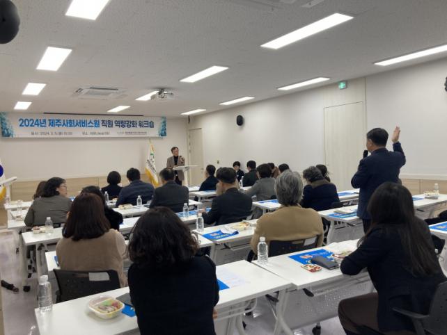 À̹ø ¿öÅ©¼óÀ» ÅëÇØ Á¦ÁÖ»çȸ¼ºñ½º¿øÀº Áö¼ÓÀûÀÎ ¹ßÀü°ú »çȸÀû Ã¥ÀÓÀ» ´ÙÇÏ¸ç µµ¹ÎÀÇ Æí¾ÈÇÑ ÀÏ»óÀ» ä¿öµå¸®´Â ÇູÇÑ º¹ÁöÆÄÆ®³Ê·Î ³ª¾Æ°¥ ´ÙÁüÀ» »õ·ÎÀÌ ´ÙÁ³´Ù.