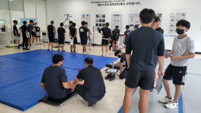 ÇÑÆí, Á¦ÁÖ½ºÆ÷Ã÷°úÇм¾ÅÍ´Â 2018³â 12¿ù 24ÀÏ¿¡ °³¼ÒÇØ µµ³» ¼±¼öµéÀÇ Ã¼·Â ÃøÁ¤°ú ¿îµ¿Ã³¹æ, ½ºÆ÷Ã÷°úÇб³½Ç, ¹ÐÂøÁö¿ø, ÄÁµð¼Å´× Áö¿ø µîÀ» ÁøÇàÇϰí ÀÖ´Ù.