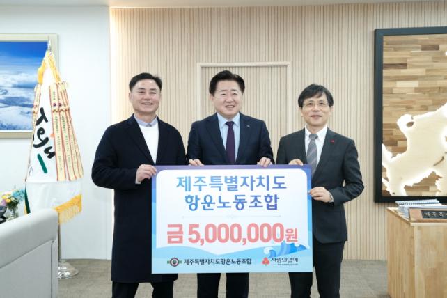 Á¦ÁÖÆ¯º°ÀÚÄ¡µµ´Â Á¦ÁÖµµ Ç׿î³ëµ¿Á¶ÇÕÀÌ 8ÀÏ ¿ÀÀü 9½Ã 40ºÐ µµÁö»ç Áý¹«½Ç¿¡¼ µµ³» Ãë¾à°èÃþÀ» À§ÇÑ ¼º±Ý(500¸¸ ¿ø)À» Á¦ÁÖ»çȸº¹Áö°øµ¿¸ð±Ýȸ¿¡ Àü´ÞÇß´Ù°í ¹àÇû´Ù.