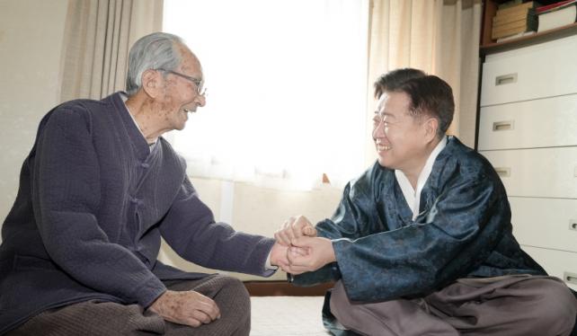 ¿À¿µÈÆ Áö»ç´Â À̳¯ ¿ÀÀü 11½Ã °©Áø³â ¼³À» ¸Â¾Æ °Å¼± ¾Ö±¹Áö»çÀÇ ÀÚÅÃÀ» ã¾Æ ¼¼¹èÇϰí À§¹®Ç°À» Àü´ÞÇϸç, Á¶±¹ÀÇ À§ÇÑ µ¶¸³¿îµ¿°¡µéÀÇ Çå½Å°ú Èñ»ý¿¡ Á¸°æ°ú °¨»çÀÇ ¸¶À½À» ÀüÇß´Ù. °Å¼± ¾Ö±¹Áö»ç´Â 1924³â»ýÀ¸·Î ¿ÃÇØ ¸¸ 99¼¼À̸ç, ±¹³» »ýÁ¸ ¾Ö±¹Áö»ç 7ÀÎ Áß 1¸íÀ¸·Î µµ³»¿¡¼´Â À¯ÀÏÇÏ´Ù.