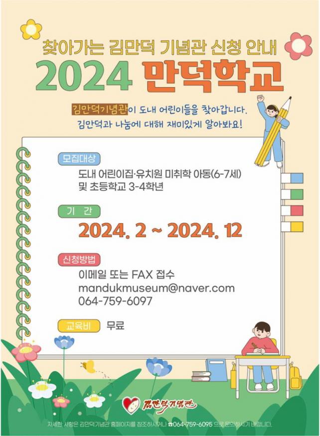 ±³À°ºñ´Â Àü¾× ¹«·á·Î ÁøÇàµÇ¸ç, µµ³» ¾î¸°ÀÌÁý ¹× À¯Ä¡¿ø°ú ÃʵîÇб³ 3-4ÇгâÀÌ¸é ´©±¸³ª ½ÅûÇÒ ¼ö ÀÖ´Ù. ´Ù¸¸ °³ÀÎ ½ÅûÀº ºÒ°¡ÇÏ°í ¾î¸°ÀÌÁý ¹× À¯Ä¡¿ø°ú ÃʵîÇб³ ´Üü¸¸ ½ÅûÀÌ °¡´ÉÇÏ´Ù.