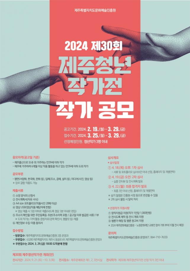 °ø°í±â°£Àº 2¿ù 19ÀϺÎÅÍ 3¿ù 29ÀϱîÁö·Î ¼·ù Á¢¼ö±â°£Àº 3¿ù 25ÀϺÎÅÍ 3¿ù 29ÀϱîÁöÀ̸ç, ½Åû¼ µî °ü·Ã¼·ù´Â Á¦ÁÖ¹®È¿¹¼úÁøÈï¿ø ´©¸®Áý¿¡¼ ³»·Á¹ÞÀ» ¼ö ÀÖ´Ù. Á¢¼öó´Â ¹®È¿¹¼úÁøÈï¿ø ¿î¿µ°ú·Î ¹æ¹®Çϰųª ¿ìÆíÀ¸·Î Á¢¼öÇÏ¸é µÈ´Ù. ÀÛ°¡ ¼±Á¤ ½É»ç´Â 4¿ù Áß ÁøÇàµÉ ¿¹Á¤À̸ç, 1Â÷ ¼·ù½É»ç¿Í 2Â÷ ½ÉÃþ ÀÎÅÍºä µîÀ» °ÅÃÄ ÃÖÁ¾ ÇÕ°ÝÀÚ´Â 3¸í À̳»·Î ¼±Á¤µÈ´Ù.