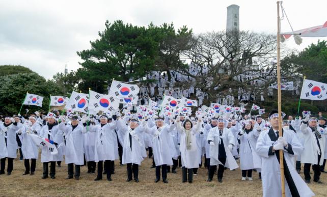 ±â³ä½Ä¿¡ ¾Õ¼ 1919³â¿¡ ÀÏ¾î³ Á¦ÁÖÀÇ ´ëÇ¥ Ç×ÀϿÀÎ Á¶Ãµ ¸¸¼¼¿îµ¿À» ÀçÇöÇÑ Á¶Ãµ¸¸¼¼´ëÇàÁø°ú ÀçÇöÇà»ç°¡ ¸¶·ÃµÆ´Ù. µµ¹Î°ú µ¶¸³À¯°øÀÚ ¹× À¯Á·, ¿À¿µÈÆ Áö»ç¸¦ ºñ·ÔÇÑ ±â°ü¡¤´ÜüÀåµéÀº µµÆ÷¿Í űظӸ®¶ì, ¼ö±â¸¦ Âø¿ëÇÏ°í ½ÅÃÌÃʵîÇб³¿¡¼ Á¶Ãµ¸¸¼¼µ¿»ê±îÁö ÇàÁøÇϸç Á¶Ãµ¸¸¼¼¿îµ¿¿¡ Âü¿©ÇÑ ¼±¿µéÀÇ ±â°³¿Í ÀÇÁö¸¦ ±â·È´Ù.