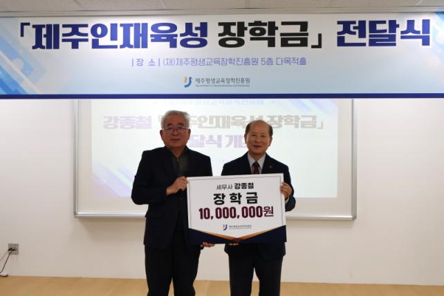 ¼¼¹«»ç °Á¾Ã¶¾¾´Â Áö³ÇØ 11¿ù¿¡ Á¦ÁÖ Áö¿ª ³» ¿ì¼öÇÑ ÀÎÀçµéÀ» Àû±ØÀûÀ¸·Î Áö¿øÇϱâ À§ÇØ ¡¸Á¦ÁÖÀÎÀçÀ°¼º ÀåÇбݡ¹ 1õ¸¸ ¿øÀ» ±âŹÇß´Ù.