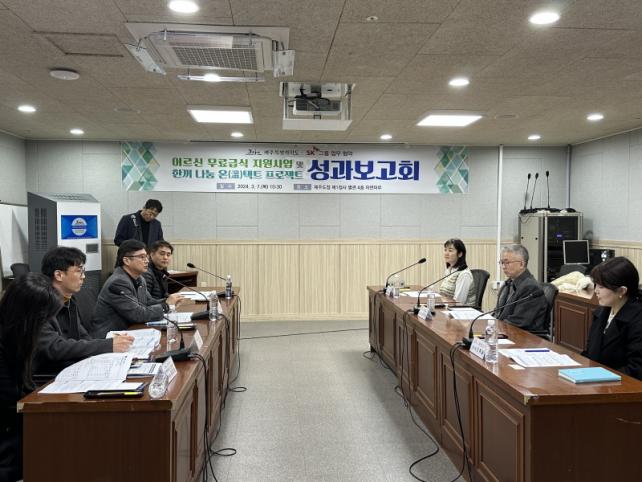 °ÀÎö Á¦ÁÖµµ º¹Áö°¡Á·±¹ÀåÀº ¡°Çù¾àÀ» ÅëÇØ 3³â°£ À̾îÁ® ¿Â ¹«·á±Þ½Ä Áö¿ø»ç¾÷ÀÌ È¥ÀÚ ³¢´Ï¸¦ °ÆÁ¤ÇÏ´Â ¾î¸£½ÅÀÇ ÀÏ»ó¿¡ ÀÛÀº µµ¿òÀÌ µÇ±â¸¦ ¹Ù¶õ´Ù¡±¸ç ¡°¾ÕÀ¸·Îµµ Ȧ·Î »ç´Â ¾î¸£½ÅµéÀÇ ½Ä»ýȰÀÌ °³¼±µÉ ¼ö ÀÖµµ·Ï °ü°è±â°ü°ú Çù·ÂÇØ ³ª°¡°Ú´Ù¡±°í ¸»Çß´Ù.