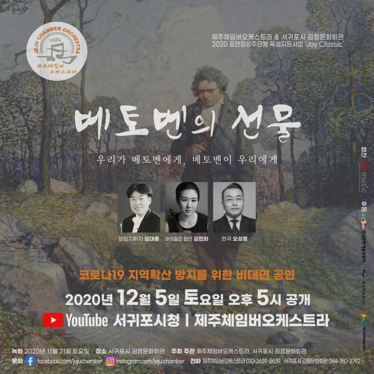 [Á¦ÁÖµµ¹Î½Å¹® = ³²Àç¿Á ±âÀÚ] º£Å亥 ź»ý 250ÁÖ³âÀ» ¸Â¾Æ ¡°Á¦ÁÖüÀÓ¹ö¿ÀÄɽºÆ®¶ó¡±°¡ º£Å亥ÀÇ ¸í°îµéÀ» Çѵ¥ ¸ð¾Æ Çö¾Ç ¿ÀÄɽºÆ®¶ó ¿¬ÁÖ·Î Áñ±æ ¼ö ÀÖ´Â °ø¿¬À» ¸¶·ÃÇß´Ù. ¼­±ÍÆ÷½Ã ±èÁ¤¹®È­È¸°ü°ú °ø¿¬Àå»óÁÖ´ÜüÀ°¼ºÁö¿ø»ç¾÷À» ÅëÇØ 3³â °£ »ç¾÷ÇÏ°í ¿î¿µÇϰí ÀÖ´Â ¡°Á¦ÁÖüÀÓ¹ö¿ÀÄɽºÆ®¶ó¡±ÀÇ µÎ¹øÂ° °ø¿¬ <º£Å亥ÀÇ ¼±¹°>ÀÌ Áö³­ 11¿ù 21ÀÏ ºñ´ë¸é ³ìÈ­ °ø¿¬À¸·Î ÁøÇàÇϰí Äڷγª·Î ÀÎÇÏ¿© ¹®È­¿¹¼ú ÇâÀ¯ÀÇ ±âȸ°¡ Àû¾îÁø Áö¿ª¹ÎµéÀ» À§ÇØ ¿À´Â 12¿ù 5ÀÏ Åä¿äÀÏ ¿ÀÈÄ 5½Ã¿¡ À¯Æ©ºê(ä³Î ¼­±ÍÆ÷)¸¦ ÅëÇÏ¿© ³ìÈ­ºÐÀÌ °ø°³µÈ´Ù. Á¦ÁÖüÀÓ¹ö¿ÀÄɽºÆ®¶ó´Â Ŭ·¡½Ä À½¾Ç¿¡ ´ëÇÑ °ü°´µéÀÇ ¸¶À½ ¹®À» ¿­°íÀÚ Áö±Ý±îÁö <¾Æ½Î ÀÛ°î°¡ÀÇ ÀνΠ¸í°î>, <»·ÇÑ ÀÛ°î°¡ÀÇ »·ÇÑ ¸í°î>, <³ª´Â ºÒÈÄÀÇ Æí°îÀÚ´Ù> µîÀÇ ´ëÁßÀûÀÎ °ø¿¬À» ¼±º¸¿´À¸¸ç À̹ø °ø¿¬¿¡´Â º£Å亥ÀÇ ¸í°î <ÇÇ¾Æ³ë ¼Ò³ªÅ¸ 8¹ø ¡®ºñ⡯ 2¾ÇÀå>¸¦ <¹ÙÀ̿ø°°ú °üÇö¾ÇÀ» À§ÇÑ ·Î¸Á½º 2¹ø>, <±³Çâ°î 1¹ø>À» Çö¾Ç ¿ÀÄɽºÆ®¶ó ¿¬ÁÖ·Î ¼±º¸ÀÌ¸ç °ü°´µé¿¡°Ô º£Å亥 À½¾ÇÀÇ Áø¼ö¸¦ ´À³¥ ¼ö ÀÖµµ·Ï ÇÒ °ÍÀÌ´Ù. Á¦ÁÖüÀÓ¹ö¿ÀÄɽºÆ®¶ó »óÀÓ ÁöÈÖÀÚ ÀÓ´ëÈïÀº ¡°Áö³­ 2³â°£ ¾Æ³¦¾ø´Â »ç¶û°ú °ü½ÉÀ» º¸³»Á̴ּø ¼­±ÍÆ÷ ½Ã¹Îµé¿¡°Ô °¨»çÇÏ´Â ¸¶À½À» ´ã¾Æ ´õ¿í Á¤¼º²¯ °ø¿¬À» ÁغñÇßÀ¸¸ç ¾ÕÀ¸·Îµµ Ŭ·¡½Ä À½¾ÇÀÇ ´ëÁßÈ­¸¦ À§ÇØ ´õ¿í ÃÖ¼±À» ´ÙÇØ ³ë·ÂÇϰڴÙ.¡±°í ¹àÇû´Ù. ¾ÕÀ¸·Îµµ ±èÁ¤¹®È­È¸°üÀº ´Ù¾çÇÑ °ø¿¬°ú ¹®È­¿¹¼ú ÇÁ·Î±×·¥ ¿î¿µÀ» ÅëÇÏ¿© Áö¿ª¹Îµé¿¡°Ô ´Ù¾çÇÑ ¹®È­¿¹¼ú ÇâÀ¯ÀÇ ±âȸ¸¦ Á¦°øÇϸç Áö¿ªÀÇ ¹®È­¿¹¼ú ¹ßÀüÀ» À§ÇØ ÃÖ¼±À» ´ÙÇϵµ·Ï ³ë·ÂÇÒ °ÍÀÌ´Ù.