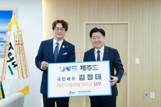Á¦ÁÖÆ¯º°ÀÚÄ¡µµ´Â ¹è¿ì ±èÁ¤Å°¡ 26ÀÏ Á¦ÁÖµµÃ»À» ¹æ¹®ÇØ Á¦ÁÖ °íÇâ»ç¶û±âºÎ±ÝÀ» ±âŹÇß´Ù°í ¹àÇû´Ù.