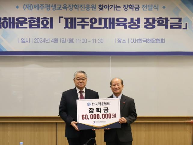 °í½ÂÇÑ Á¦ÁÖÆò»ý±³À°ÀåÇÐÁøÈï¿øÀåÀº ¡°¿ì¸®³ª¶ó ÇØ¿î»ê¾÷ ¹ßÀüÀ» À§ÇØ ¾Ö¾²°í °è½Ã´Â Çѱ¹ÇØ¿îÇùȸ¿¡¼ Á¦ÁÖÁö¿ª ÀÎÀçµéÀÌ ÈǸ¢ÇÏ°Ô ¼ºÀåÇÒ ¼ö ÀÖµµ·Ï ÀåÇбÝÀ» ±âºÎÇØ Áּż °¨»çµå¸°´Ù¡±¶ó¸ç, ¡°Àü´Þ¹ÞÀº ÀåÇбÝÀº Á¦ÁÖÀÇ ¹Ì·¡¸¦ À̲ø¾î°¥ ÇлýµéÀ» À§ÇØ ¼ÒÁßÈ÷ »ç¿ëÇϰڴ١±¶ó°í °¨»çÀÇ ¶æÀ» ¹àÇû´Ù.
