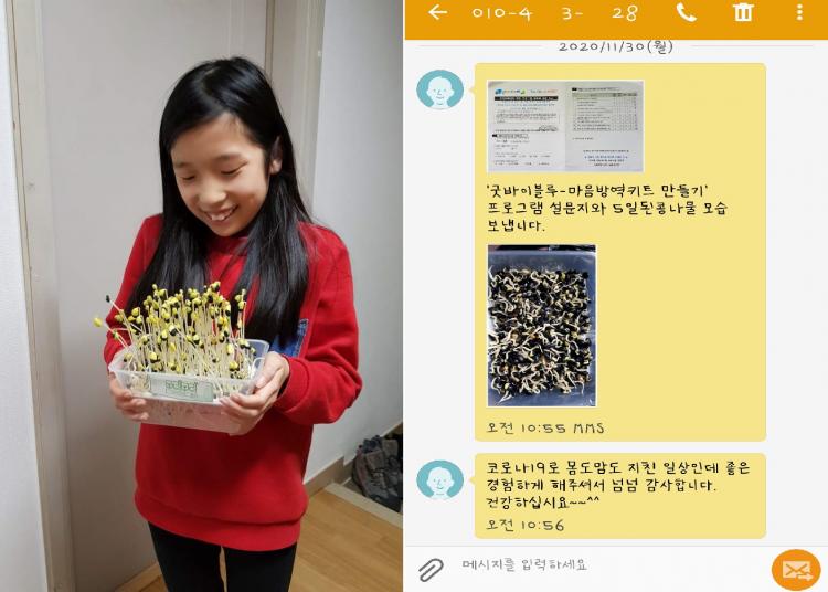 ¸¶À½¹æ¿ª ŰƮ´Â Äڷγª19ÀÇ Àå±âÈ·Î À§ÃàµÈ ¸¶À½À» Ä¡À¯Çϱâ À§ÇÏ¿© ½º½º·Î ÀÛ¹°À» Ű¿ì°í ¼öÈ®Çϴ¡®Äᳪ¹° Ű¿ì±â¡¯, ¹«·ÂÇÔÀ» ¾ø¾ÖÁÙ¡®¸¶½ºÅ© ½ºÆ®·¦ ¸¸µé±â¡¯µîÀ¸·Î ±¸¼ºµÇ¾ú°í, ¡â µå¶óÀÌºê ½º·ç¸¦ ÅëÇØ ¹ÞÀº¡®Äᳪ¹° Ű¿ì±â¡¯Å°Æ®·Î ¾à 1~2ÁÖ°£ Äᳪ¹°À» Ű¿ö Äᳪ¹°ÀÌ ÀÚ¶ó´Â »çÁø°ú ´Ù ÀÚ¶õ Äᳪ¹°À» ÀÌ¿ëÇÑ ¿ä¸® »çÁøÀ» ¹®ÀÚ·Î Àü¼ÛÇÏ¿© ¿ª½Ã ºñ´ë¸é ¹æ½ÄÀ¸·Î ÇÁ·Î±×·¥ ¿î¿µ°á°ú¸¦ Àü´Þ¹Þ°í ÀÖ´Ù.