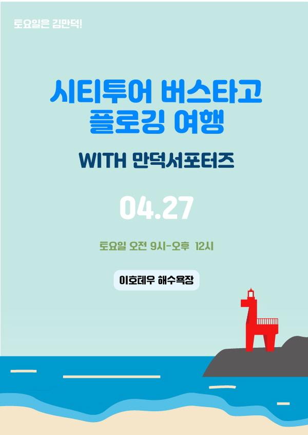 À̹ø ÇÁ·Î±×·¥Àº ¿ÀÀü 9½ÃºÎÅÍ ¿ÀÈÄ 12½Ã±îÁö ÁøÇàµÇ¸ç ±è¸¸´ö±â³ä°ü¿¡¼ ½ÃƼÅõ¾î ¹ö½º¸¦ Ÿ°í ÀÌÈ£Å׿ì ÇØº¯À¸·Î À̵¿ÇÏ¿© Ç÷αëÀ» ÇÑ´Ù. Âü°¡ÀÚµéÀº Á÷Á¢ ÇØ¾ç ¾²·¹±â¸¦ ÁÖ¿ö ȯ°æº¸È£¸¦ ½ÇõÇÏ¸ç ³» ¼ÕÀ¸·Î ¹Ù´Ù¸¦ ±ú²ýÇÏ°Ô ¸¸µé¾î º¸´Â ½Ã°£À» °¡Áú ¼ö ÀÖ´Ù.