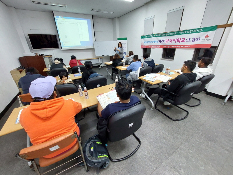 À̹ø »ç¾÷Àº Á÷ÀåÀÏ·Î ÇнÀ ±âȸ°¡ ÀûÀº Á¦Áֽà ±¸ÁÂÀ¾ °áÈ¥ ÀÌÁÖ¿©¼º°ú ¿Ü±¹ÀÎ Áֹε鿡°Ô ¡®Çѱ¹¾î¿Í Çѱ¹¹®È ÃʱÞ2¡¯ °úÁ¤ÀÎ ¹®¹ý°ú ¾îÈÖ, »ýȰ¾ð¾î¸¦ Áß½ÉÀ¸·Î ÇнÀ ´É·Â Çâ»ó µîÀ» À§ÇØ 2024³â 1¿ùºÎÅÍ 4¿ù±îÁö 30ȸ±â(60½Ã°£)·Î ¿î¿µµÇ¾ú´Ù. (Àç)¿À¸®¿ÂÀç´Ü¿¡¼´Â 2018³âºÎÅÍ ÇØ¸¶´Ù ±¸ÁÂÀ¾ ´Ù¹®È°¡Á¤°ú ¿Ü±¹ÀÎ ÁֹεéÀÇ Áö¿ª»çȸ ÀûÀÀÀ» À§ÇÑ ¹®È ¿©°¡ ÇÁ·Î±×·¥À» Áö¼ÓÀûÀ¸·Î Áö¿øÇØÁÖ°í ÀÖ´Ù.