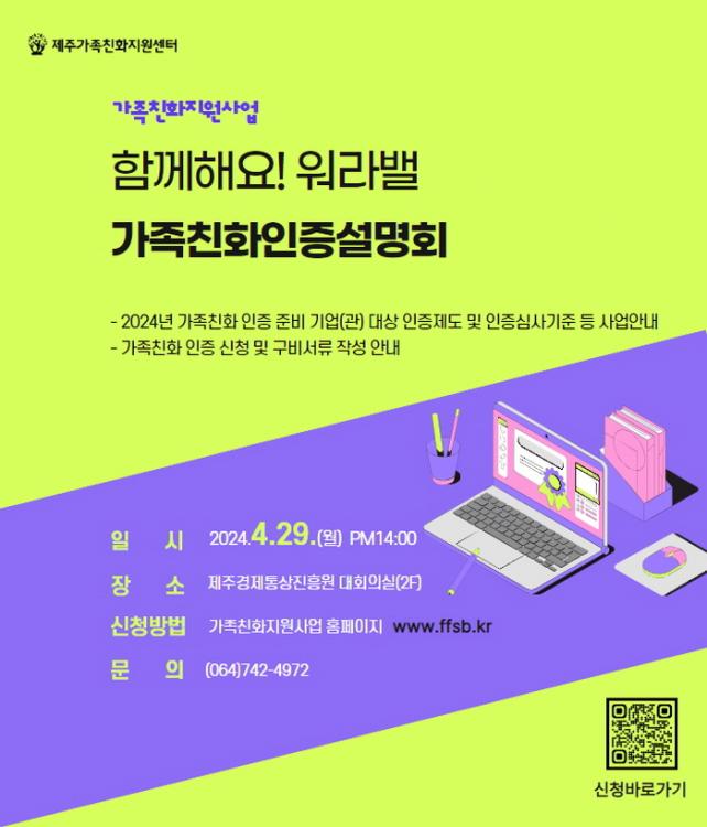 Âü¿©¸¦ Èñ¸ÁÇÏ´Â Á¦ÁÖµµ³» ±â¾÷°ú °ø°ø±â°üÀº °¡Á·Ä£ÈÁö¿ø»ç¾÷ ȨÆäÀÌÁö(www.ffsb.kr)¸¦ ÅëÇØ ¼³¸íȸ Àü³¯±îÁö ½Åû°¡´ÉÇϸç, ÀÚ¼¼ÇÑ »çÇ×Àº Á¦ÁÖ°¡Á·Ä£ÈÁö¿ø¼¾ÅÍ·Î ¹®ÀÇÇÏ¸é ¾È³» ¹ÞÀ» ¼ö ÀÖ´Ù. ¿©¼º°¡Á·ºÎ¿¡¼´Â 2024³â °¡Á·Ä£ÈÀÎÁõ ½Å±Ô ½ÅûÀ» 6¿ù 28ÀϱîÁö °¡Á·Ä£ÈÁö¿ø»ç¾÷ ȨÆäÀÌÁö¿¡¼ ½Åû ¹Þ°í ÀÖ´Ù.
